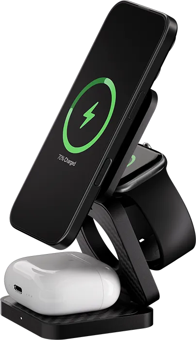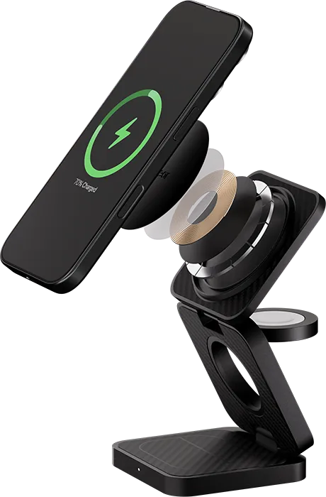 | 100% БЕЗОПАСНО | Продвинутые технологии защиты от короткого замыкания, перегрева и перенапряжения. Нескользящее дно для максимальной устойчивости док-станции. Мощные магниты и нескользящие зарядные панели для надёжного крепления ваших устройств при зарядке. |