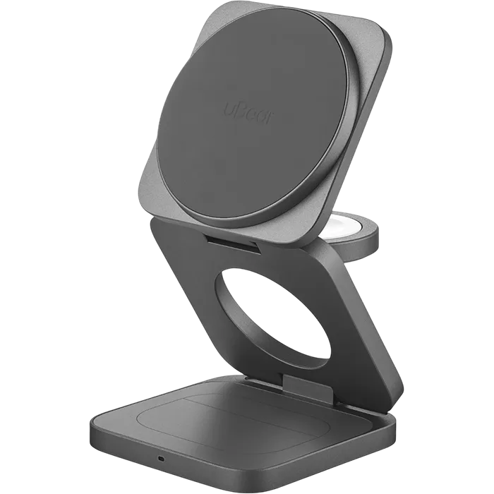 | ПРОДУМАННАЯ ЭРГОНОМИКА | Оригинальная складная конструкция продумана до мелочей. Одним легким движением полноценная док-станция для трех устройств трансформируется в ультракомпактный девайс, который легко взять с собой. |