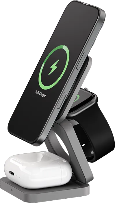 | НЕЗАМЕНИМЫЙ КОМПАНЬОН 3В1 | uBear Balance Ultra обеспечивает одновременную быструю зарядку iPhone (начиная с 12-й серии), а также наушников и Apple Watch. Идеальное решение для дома, офиса или поездок. | Три устройства — одна компактная станция без лишних проводов. |