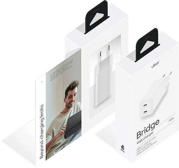| ТОЛЬКО ИННОВАЦИИ | В зарядном устройстве использован продвинутый транзистор на основе нитрида галлия (GaN). Он позволяет снизить размеры зарядного блока и заряжать устройства быстрее на большей мощности. Кроме того, он снижает перегрев, что исключает возможность деформации пластиковых частей корпуса. Чипы такого уровня используют лишь ведущие производители техники, например, Apple или разработчики оборудования для сетей 5G. | uBear — это бренд для всех, кто живет полной жизнью, заряжаясь энергией большого города. |