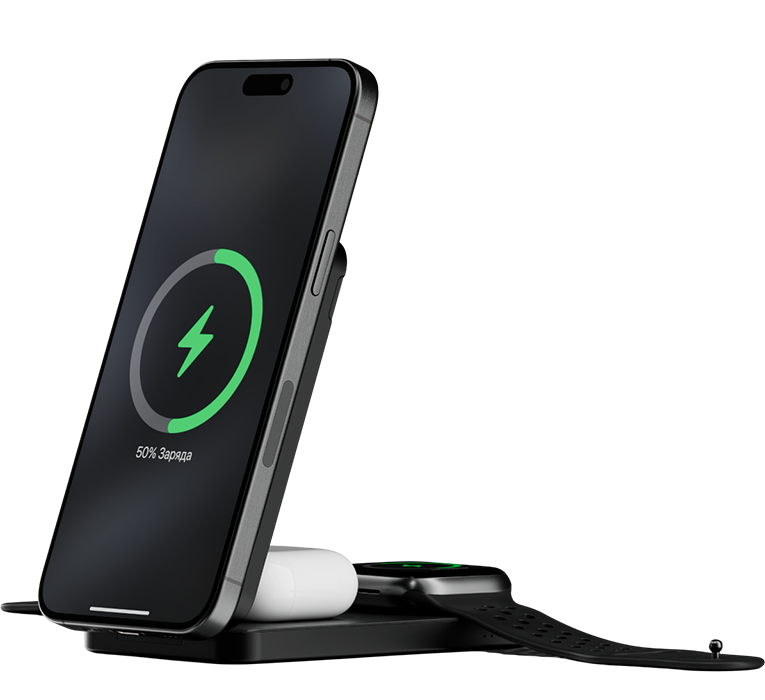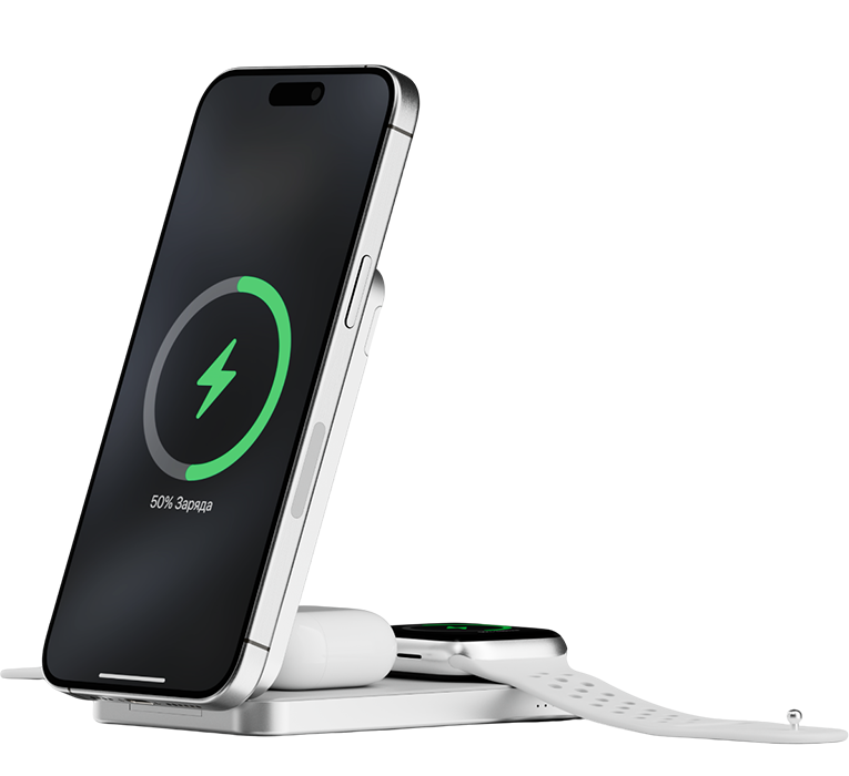 | КОМПАКТНЫЙ И МОЩНЫЙ | Устройство поддерживает беспроводную зарядку мощностью до 15 Вт, а также проводную зарядку аккумулятора до 20 Вт с технологией Power Delivery. Кроме того, предусмотрена быстрая зарядка Apple Watch мощностью до 5 Вт. |