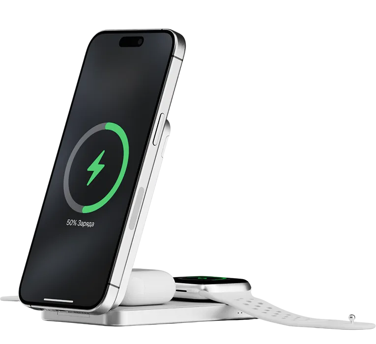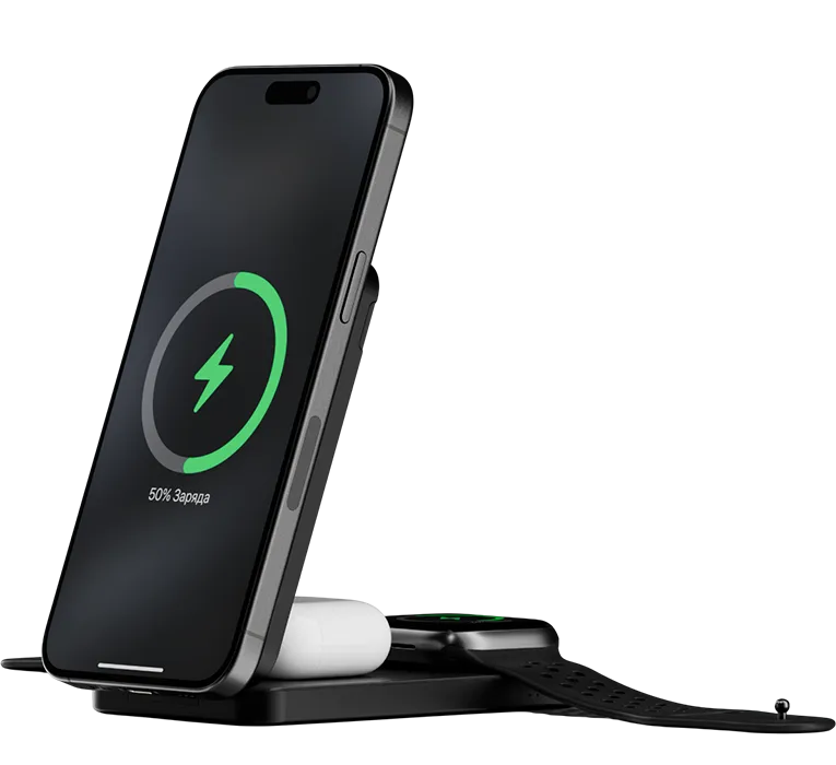 | КОМПАКТНЫЙ И МОЩНЫЙ | Устройство поддерживает беспроводную зарядку мощностью до 15 Вт, а также проводную зарядку аккумулятора до 20 Вт с технологией Power Delivery. Кроме того, предусмотрена быстрая зарядка Apple Watch мощностью до 5 Вт. |