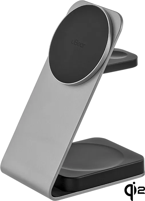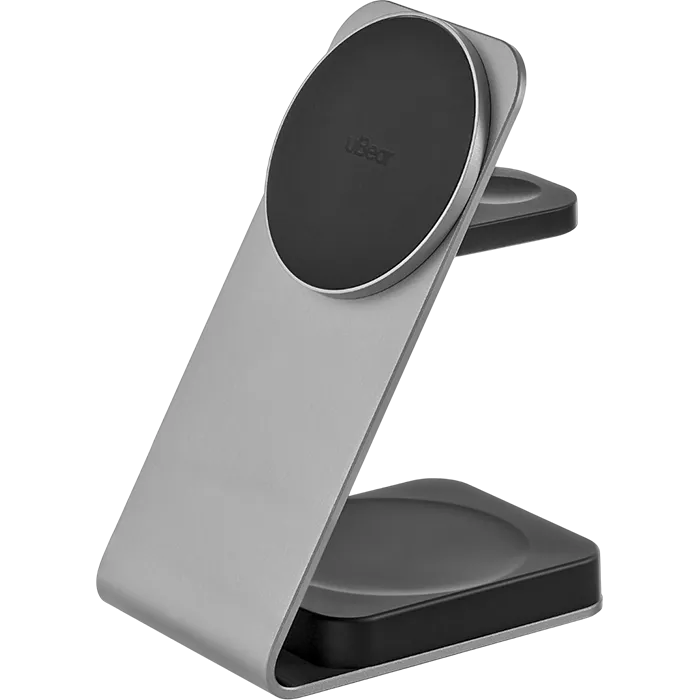 | ТРИ В ОДНОМ | uBear Level Ultra – универсальная зарядная станция, совместимая с MagSafe и поддерживающая стандарт Qi2 для iPhone 12 и новее. Она обеспечивает быструю одновременную зарядку смартфона, беспроводных наушников и Apple Watch. Общая мощность 25Вт распределяется эффективно: до 15Вт на iPhone и по 5Вт — на часы и наушники. Мощные встроенные магниты надежно фиксируют устройство и ускоряют процесс зарядки, при этом часы и наушники получают оптимальное питание. | Level ULTRA — практичность и стиль в каждой детали. |