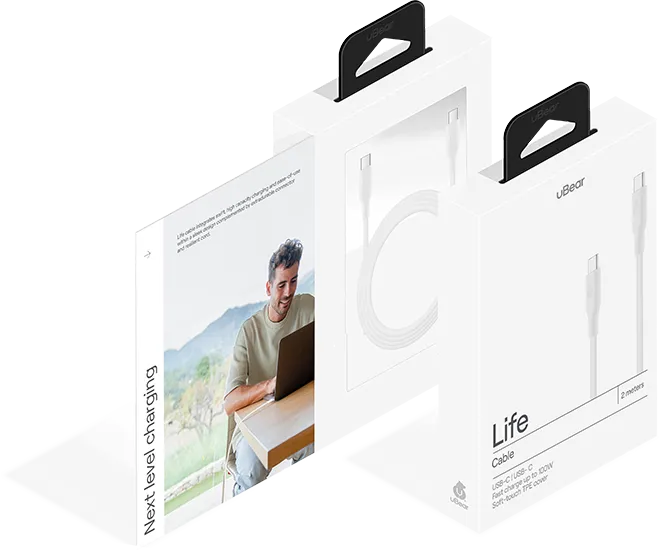 МОЩНОСТЬ ДО 100W | Заряжайте ваше устройство на максимальной скорости благодаря функции Power Delivery. Интегрированный E-Mark chip обеспечивает мощность работы кабеля до 100W, что позволяет вам заряжать не только смартфоны, но и более мощные устройства как ноутбук. | uBear — это бренд для всех, кто живет полной жизнью, заряжаясь энергией большого города. |
