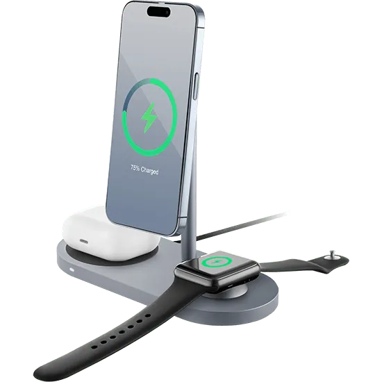 | MAGSAFE СОВМЕСТИМ | Индукционные катушки последнего поколения гарантируют эффективную зарядку для всех QI-совместимых устройств. Подвижный держатель оснащен мощными магнитами в основании для быстрого и удобного крепления iPhone (выше 12-й серии) в один клик. | STAGE PRO — стильное и надёжное решение на каждый день. |