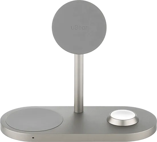 | ДИЗАЙН | Корпус док-станции выполнен из премиального авиационного алюминия — подобный используется в корпусах Apple MacBook. Два варианта цвета док-станции также соответствуют классическим цветам MacBook. Зарядные панели покрыты нескользящим и приятным на ощупь покрытием Soft Touch. |