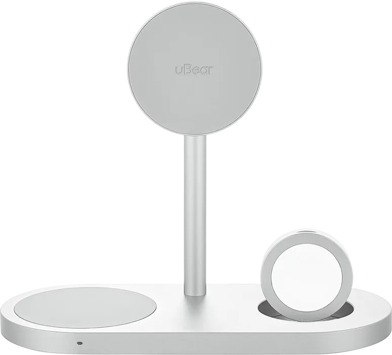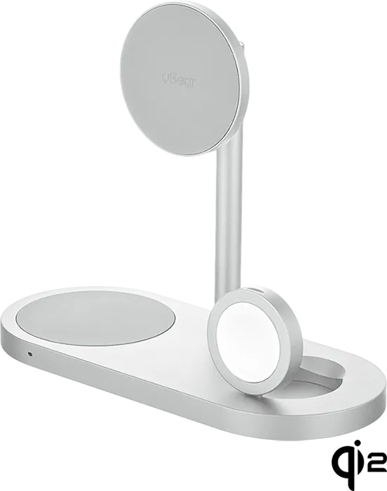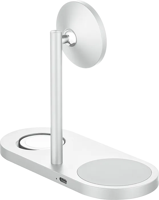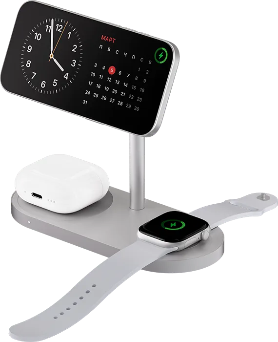 | ДИЗАЙН | Корпус док-станции выполнен из премиального авиационного алюминия — подобный используется в корпусах Apple MacBook. Два варианта цвета док-станции также соответствуют классическим цветам MacBook. Зарядные панели покрыты нескользящим и приятным на ощупь покрытием Soft Touch. |