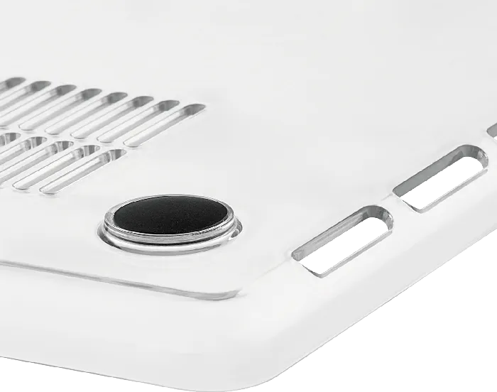 | НАДЕЖНАЯ ФИКСАЦИЯ | Чехол полностью повторяет форму устройства и имеет силиконовые ножки. Они предотвращают скольжение по поверхности и делают работу с MacBook комфортнее. | |